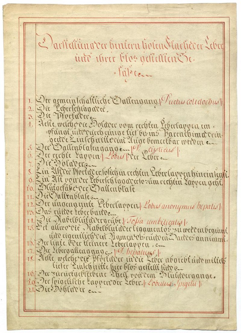 Der Text ist die ergänzende Beschreibung in deutscher Sprache zum anatomischen Wachsmodell der Lebergefäße und Gallenwege.