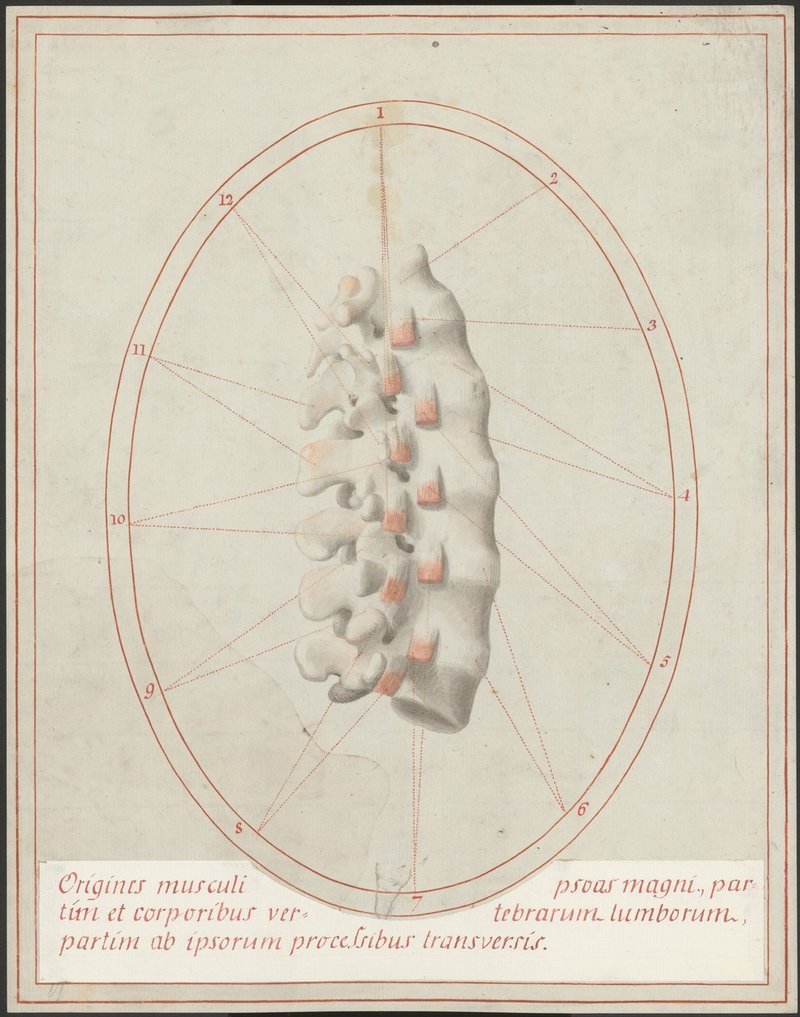 Lendenwirbelsäule von der Seite. Die Ursprünge des Musculus psoas major.