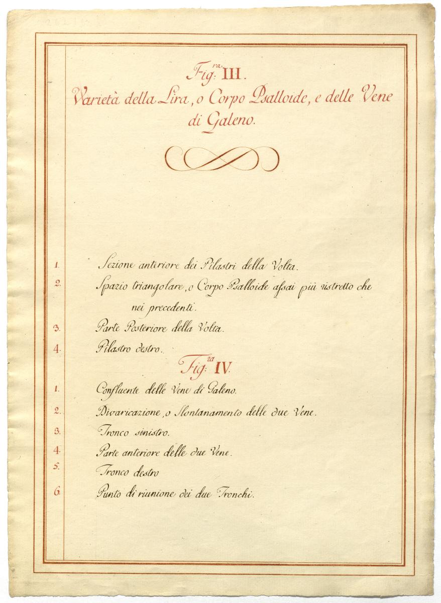 Der Text ist die ergänzende Beschreibung in italienischer Sprache zum anatomischen Wachsmodell des Hirnes.