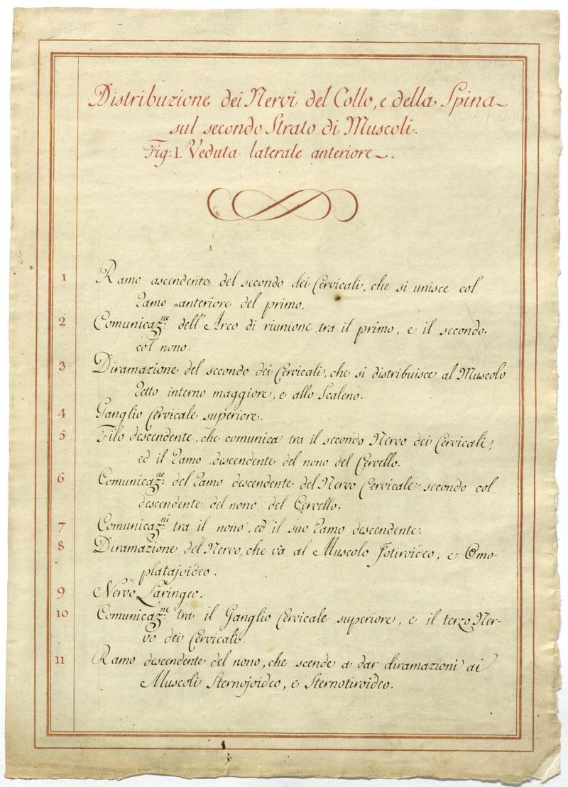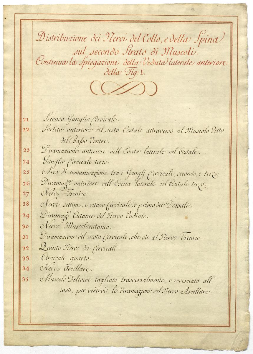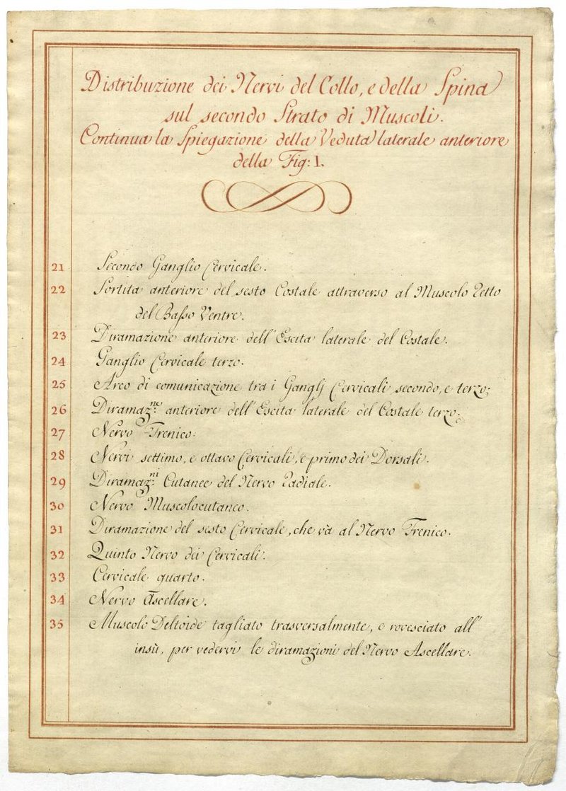 Der Text ist die ergänzende Beschreibung in italienischer Sprache zum anatomischen Wachsmodell des Nervus axillaris.