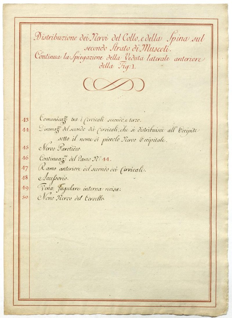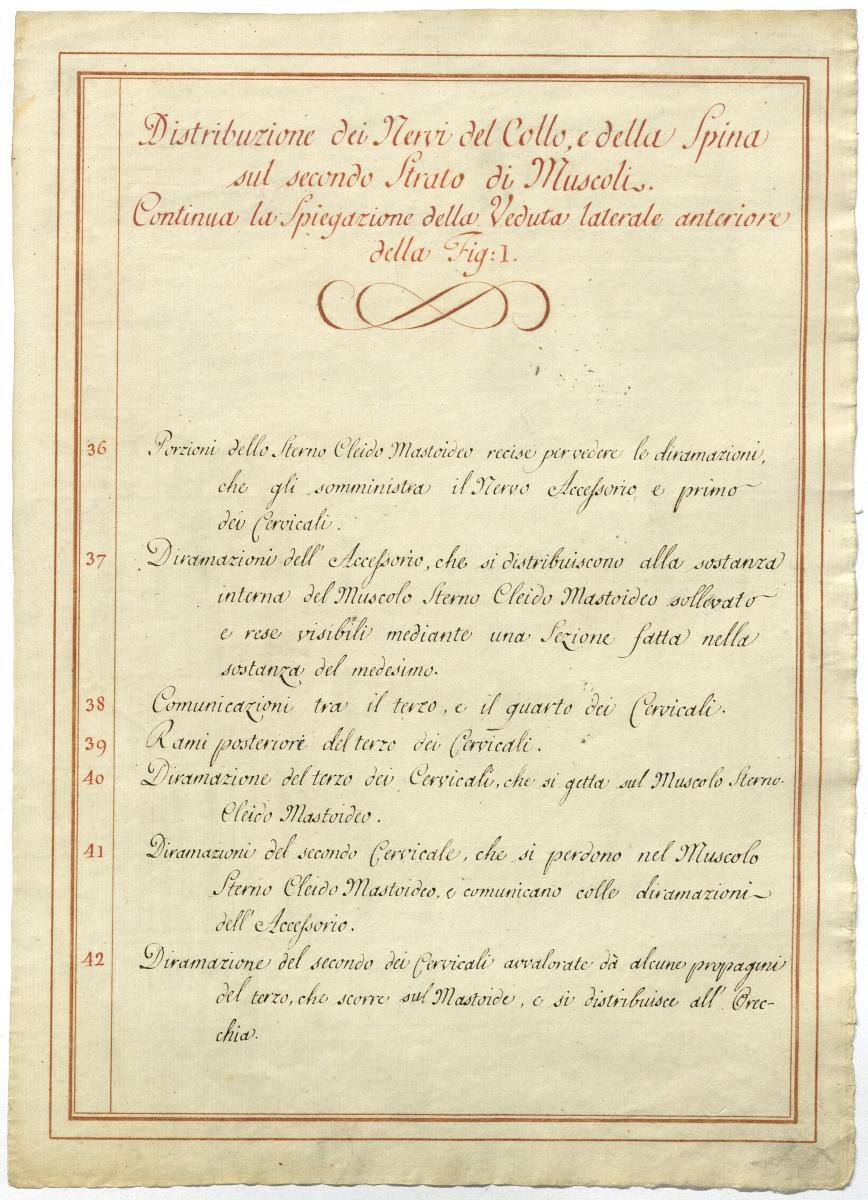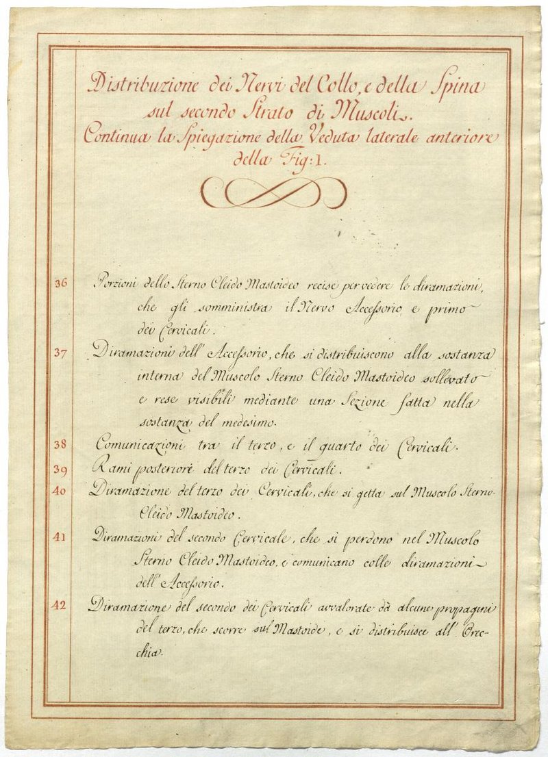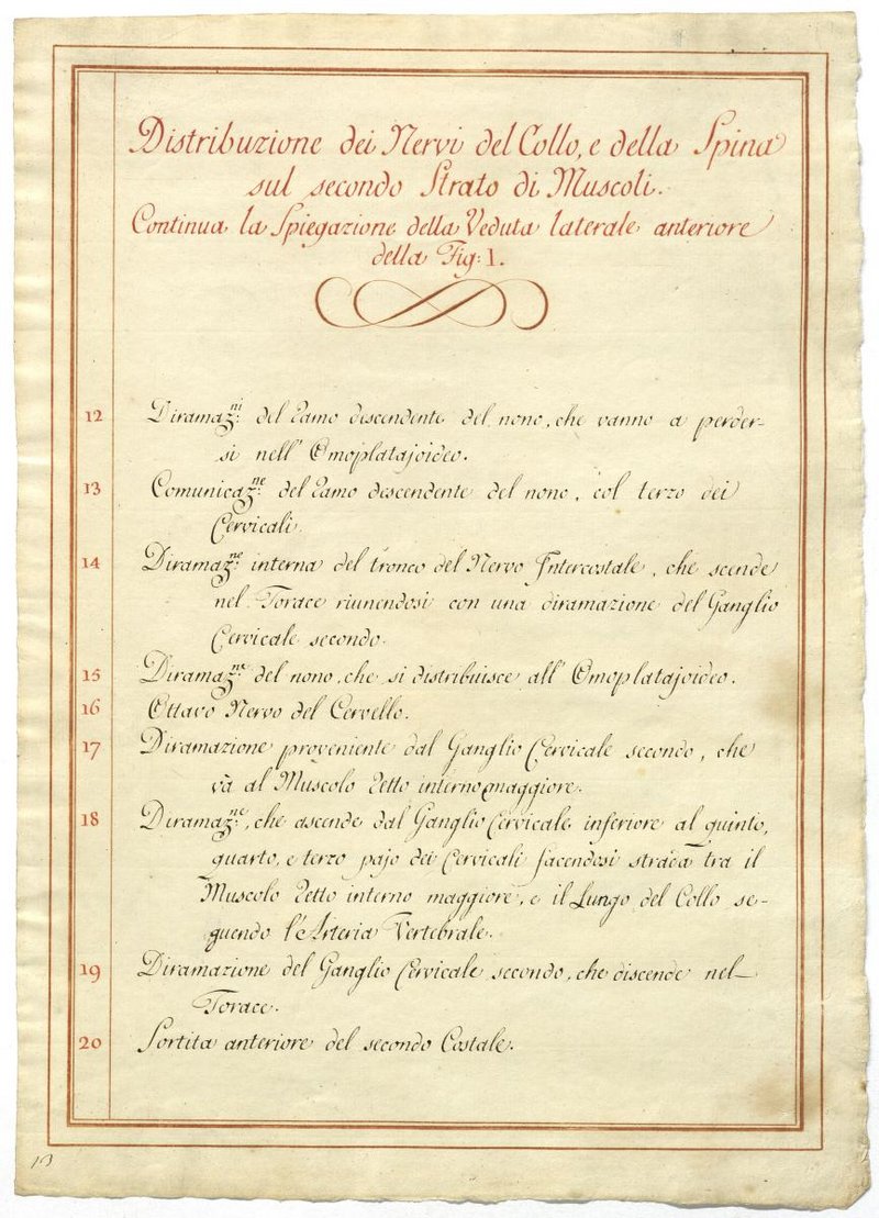 Der Text ist die ergänzende Beschreibung in italienischer Sprache zum anatomischen Wachsmodell des Nervus axillaris.