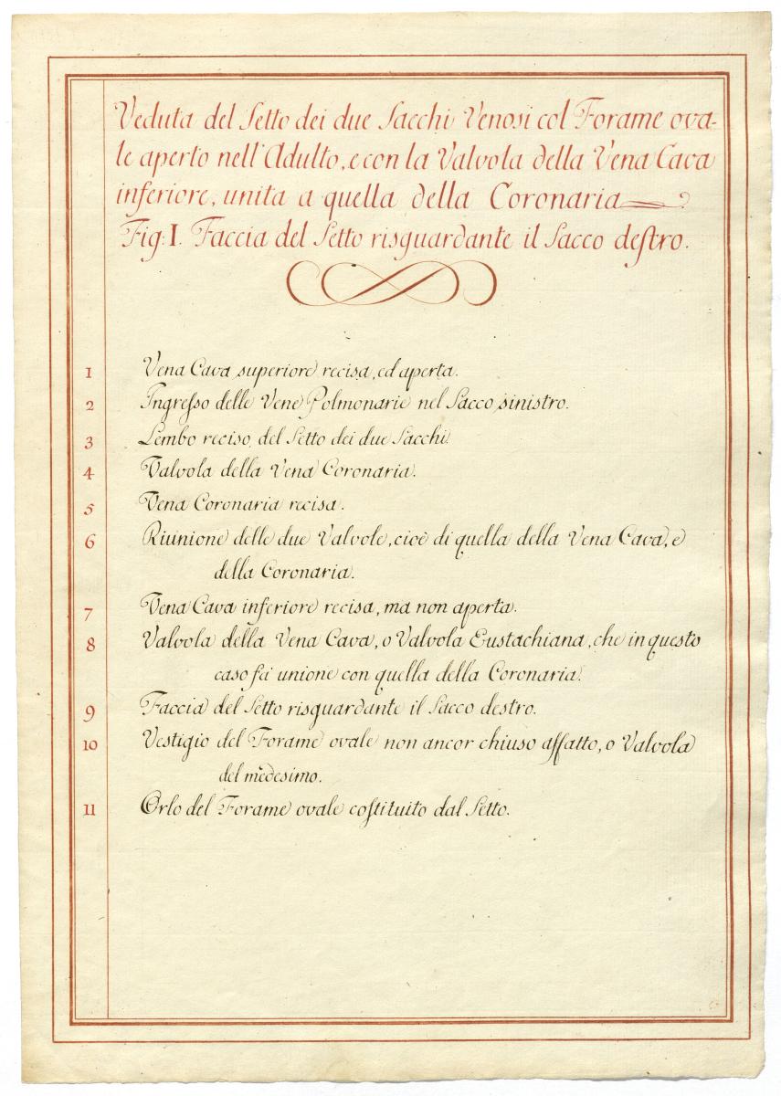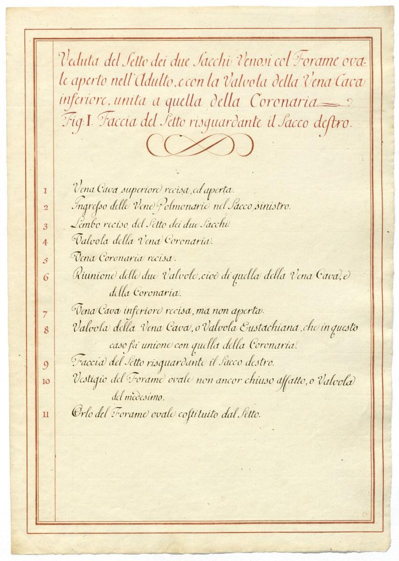 Der Text ist die ergänzende Beschreibung in italienischer Sprache zum anatomischen Wachsmodell des Herzens.