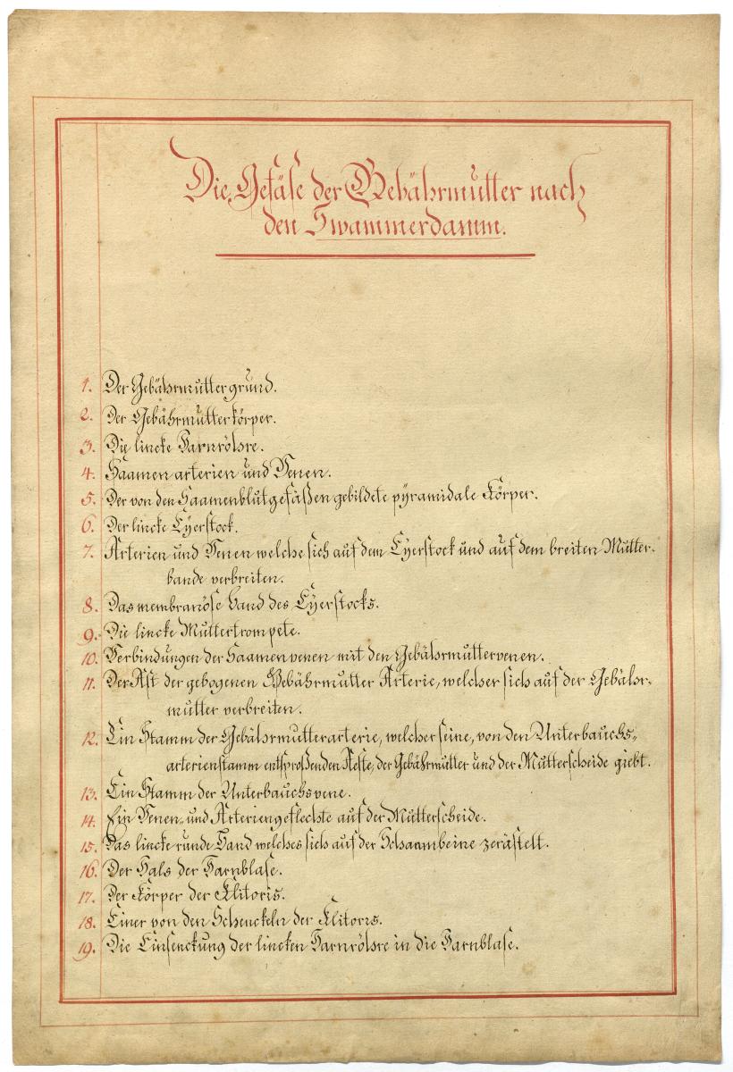 Der Text ist die ergänzende Beschreibung in deutscher Sprache zum anatomischen Wachsmodell des weiblichen Genitale.