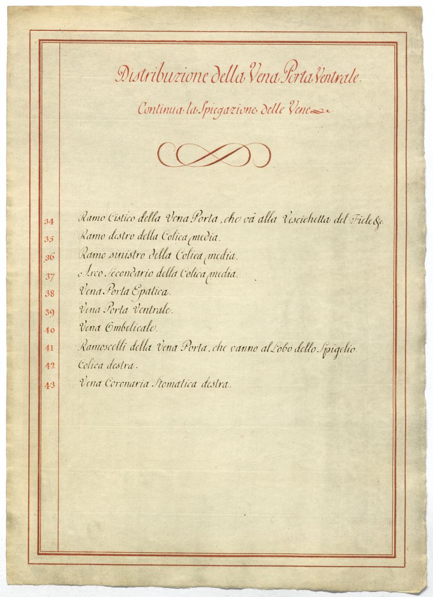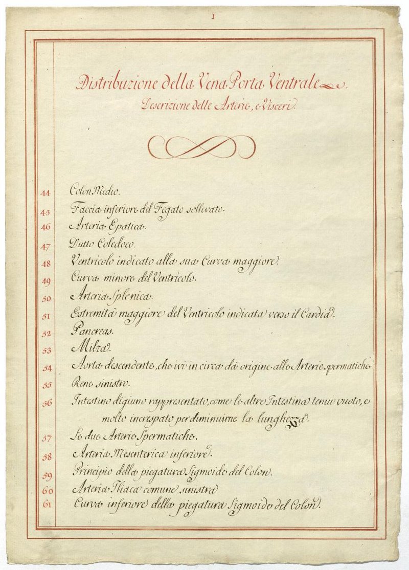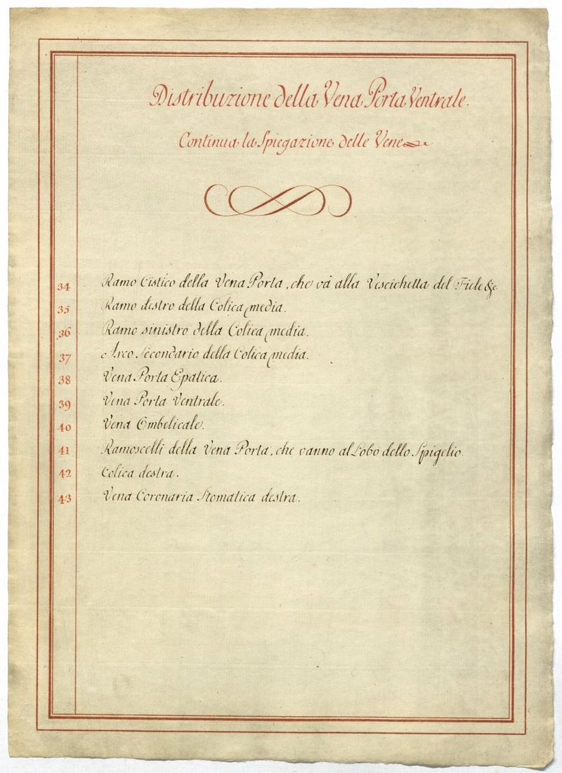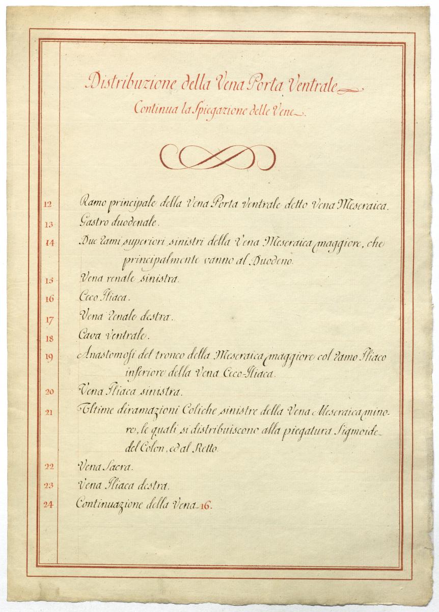 Der Text ist die ergänzende Beschreibung in italienischer Sprache zum anatomischen Wachsmodell der Pfortader.