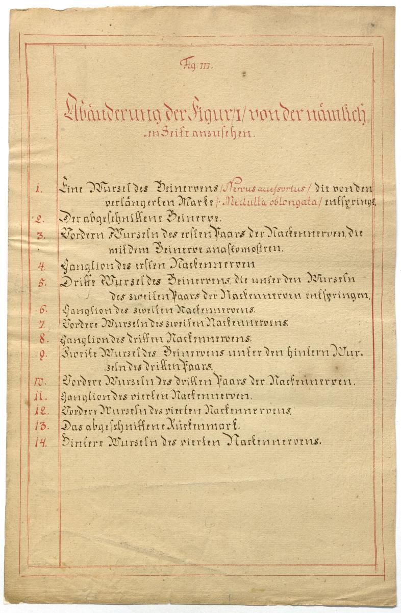Der Text ist die ergänzende Beschreibung in deutscher Sprache zum anatomischen Wachsmodell des Nervus accessorius.