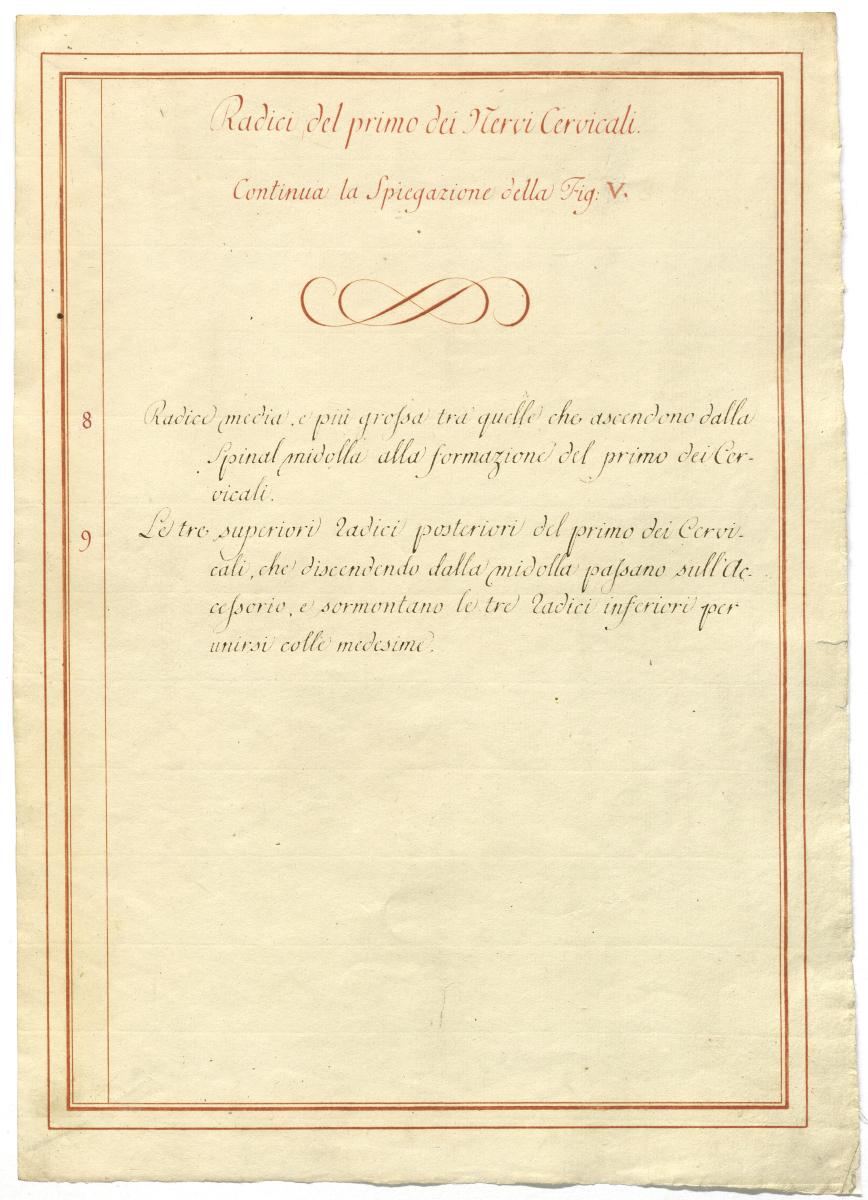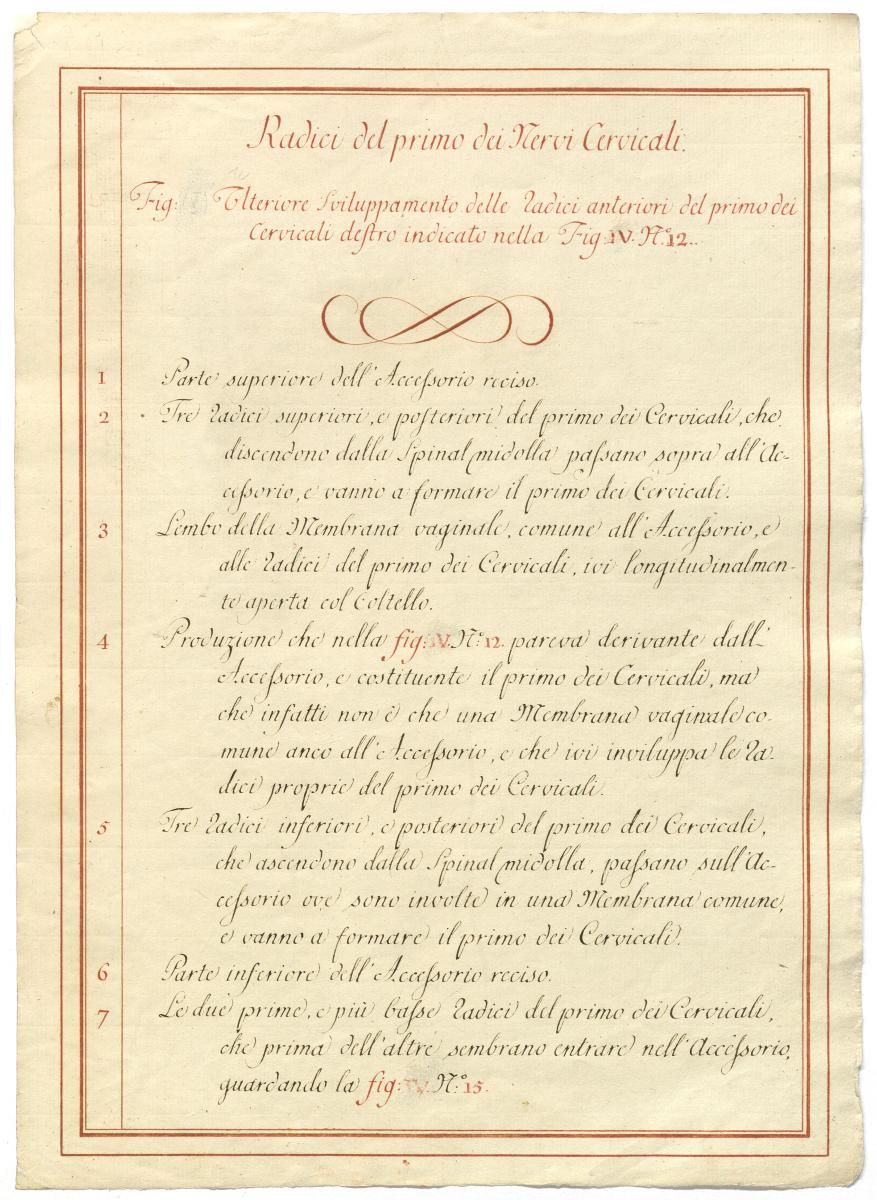 Der Text ist die ergänzende Beschreibung in italienischer Sprache zum anatomischen Wachsmodell des Nervus accessorius.