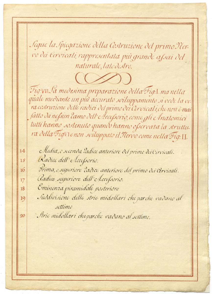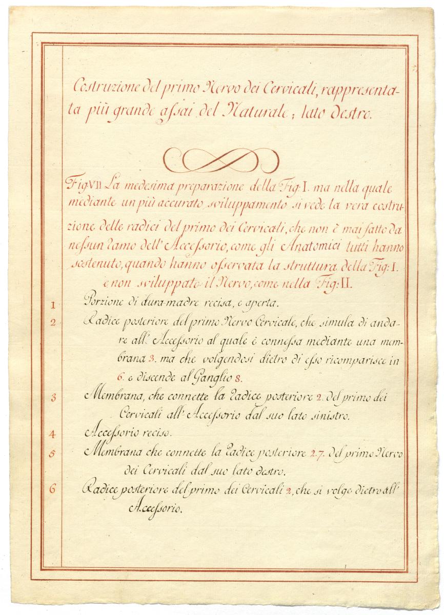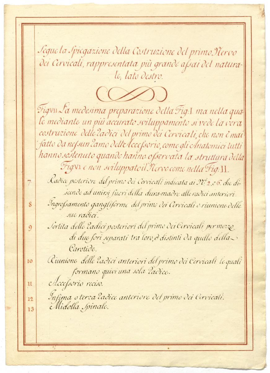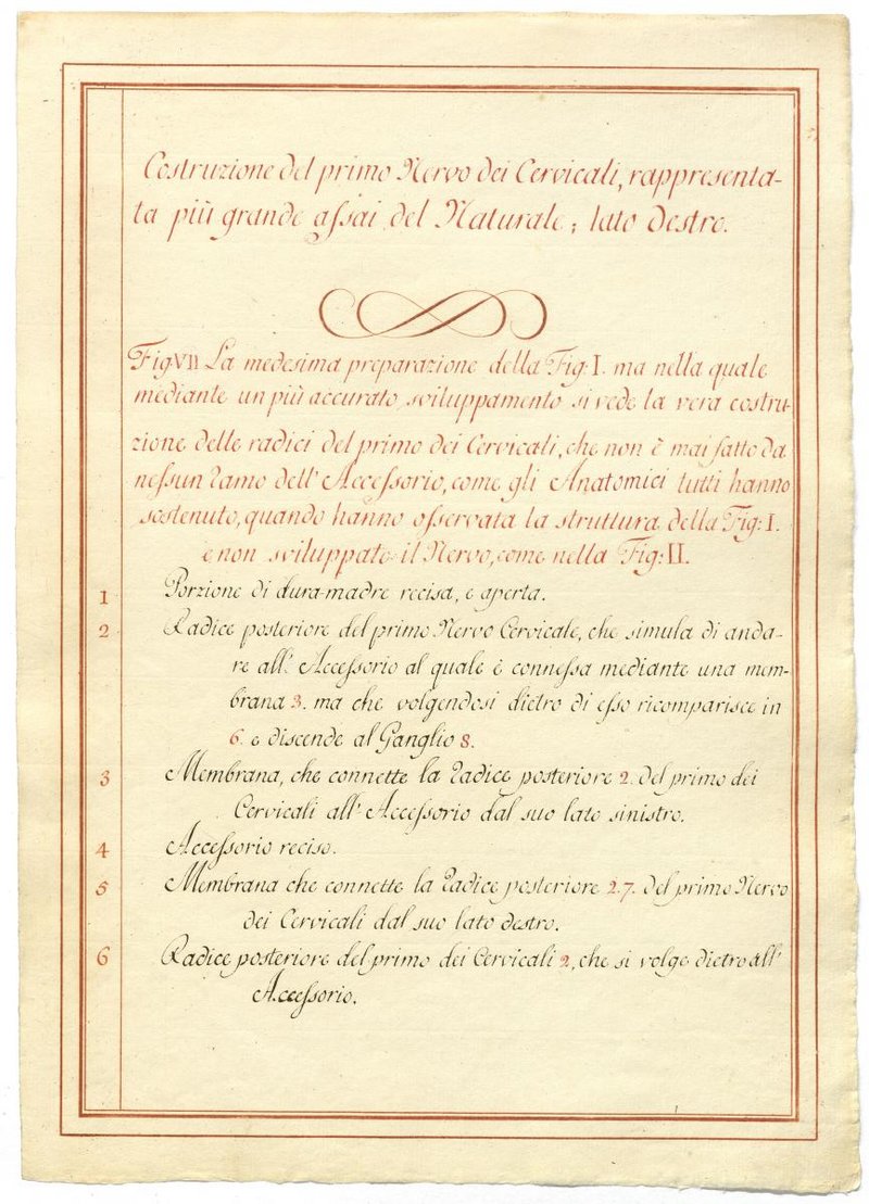Der Text ist die ergänzende Beschreibung in italienischer Sprache zum anatomischen Wachsmodell des Nervus accessorius.