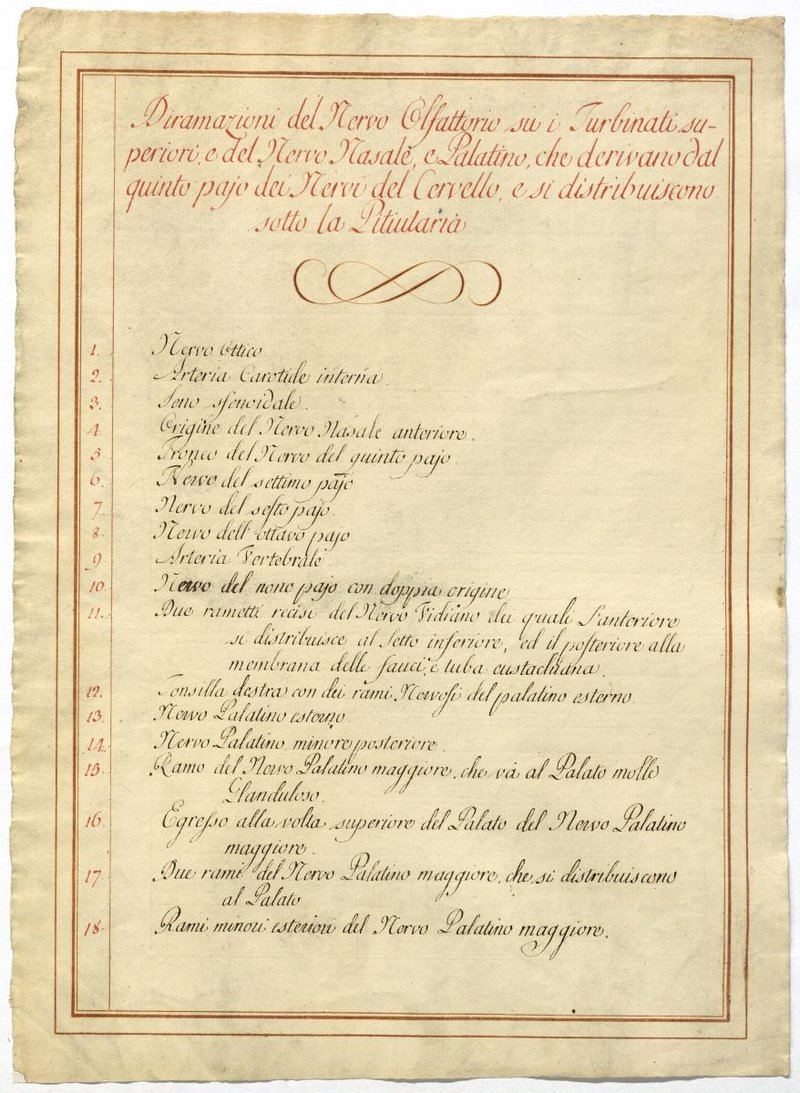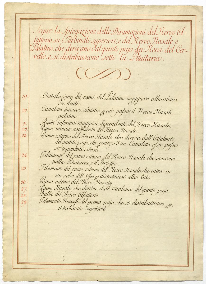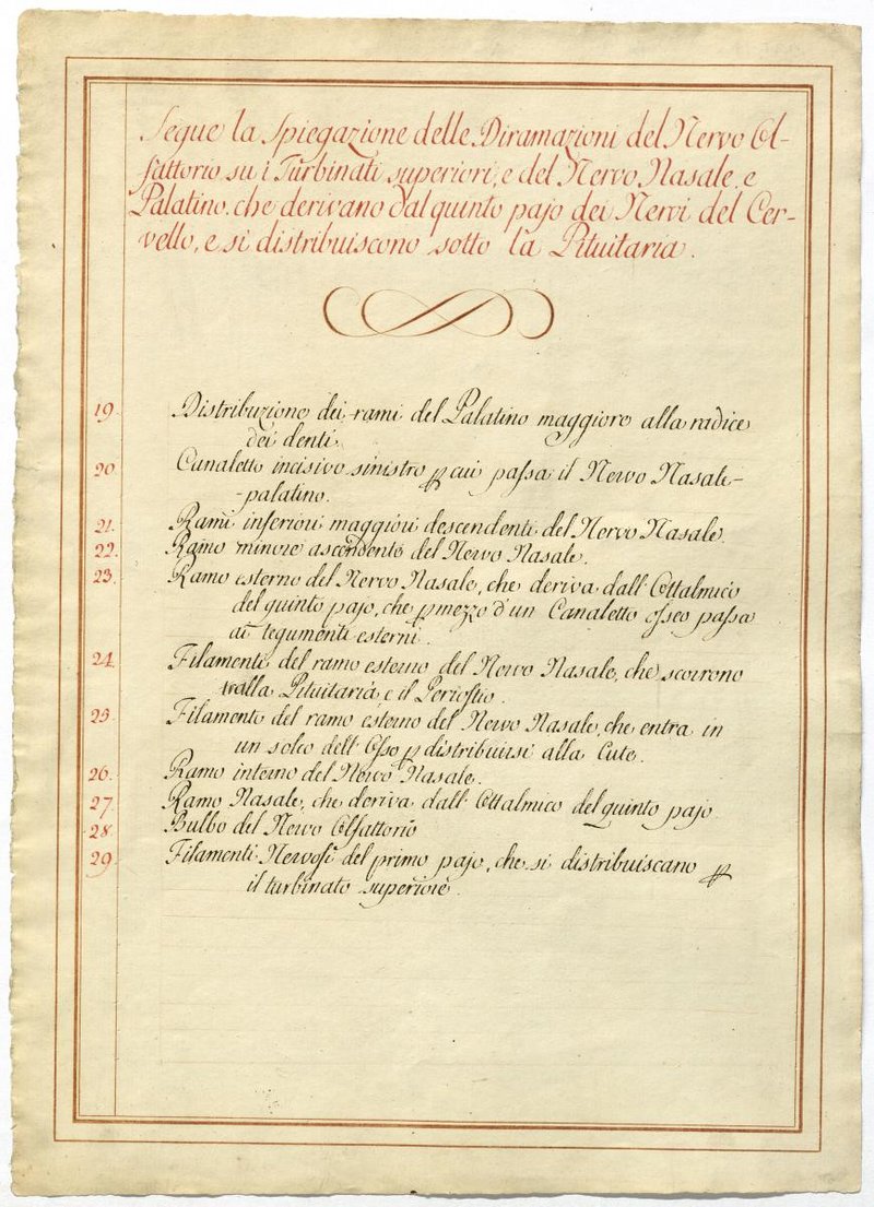 Der Text ist die ergänzende Beschreibung in italienischer Sprache zum anatomischen Wachsmodell der Riechregion.