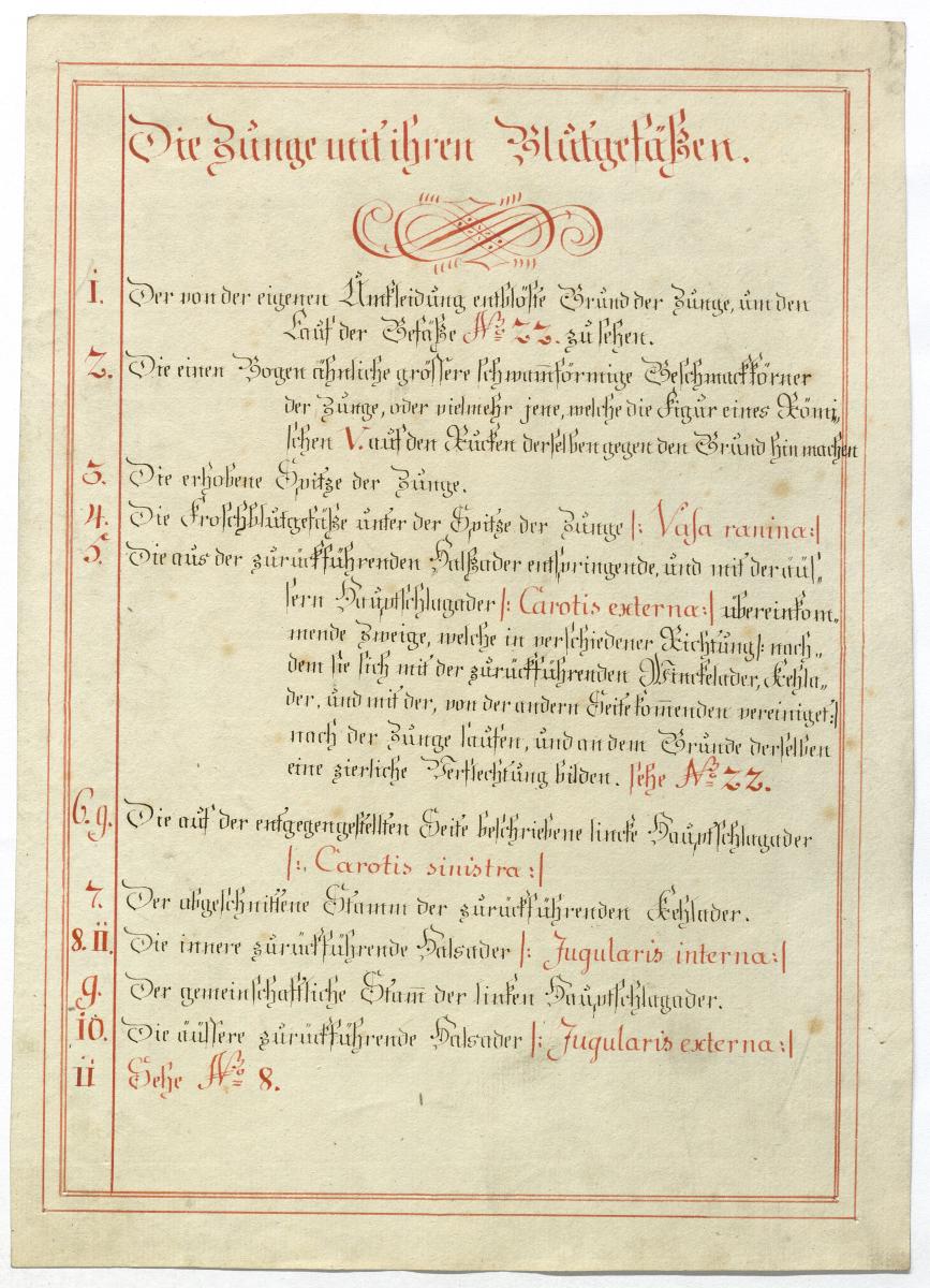 Der Text ist die ergänzende Beschreibung in deutscher Sprache zum anatomischen Wachsmodell der Zunge.