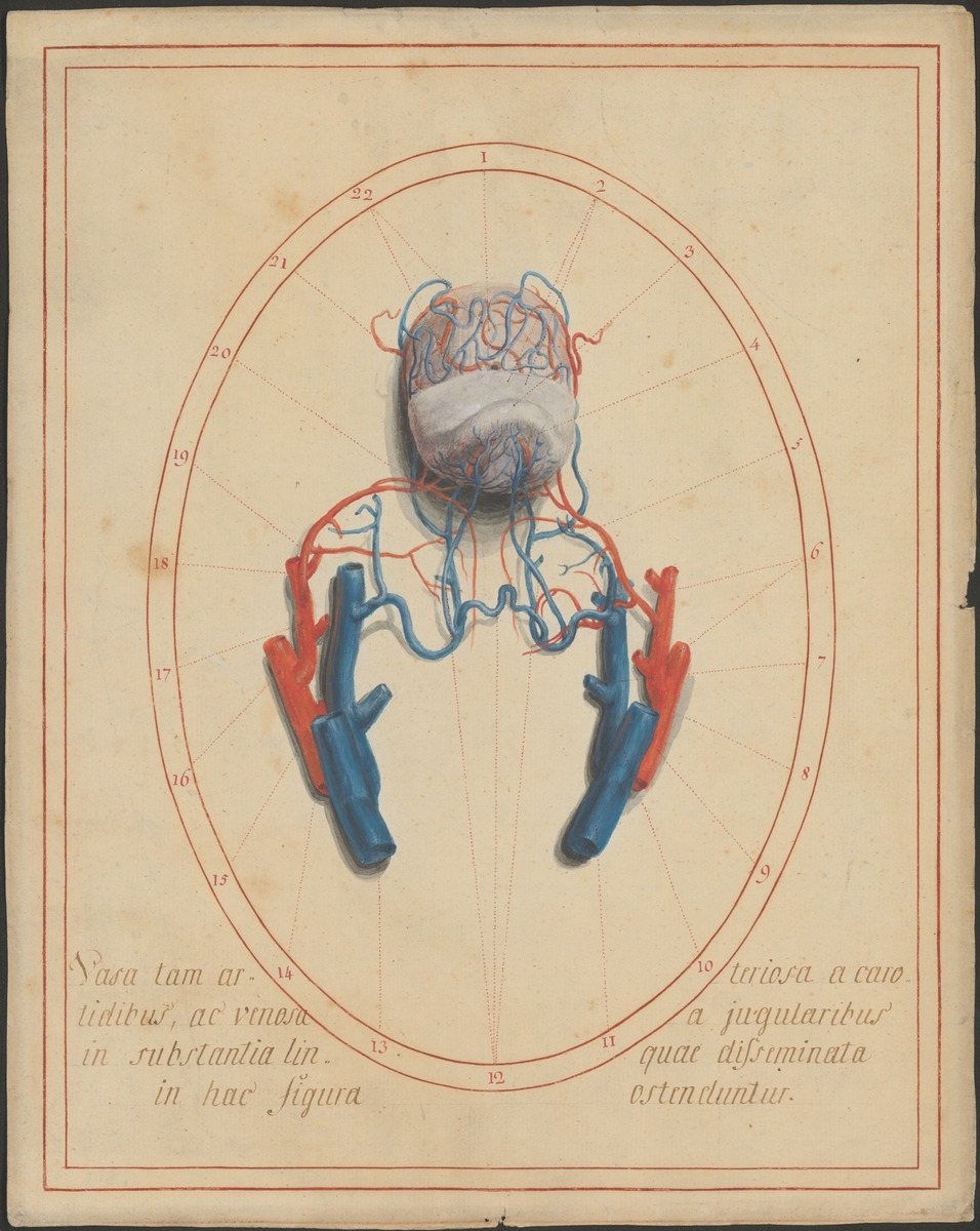 Die Zunge (Lingua) mit ihren Blutgefäßen (Vasa lingualia).