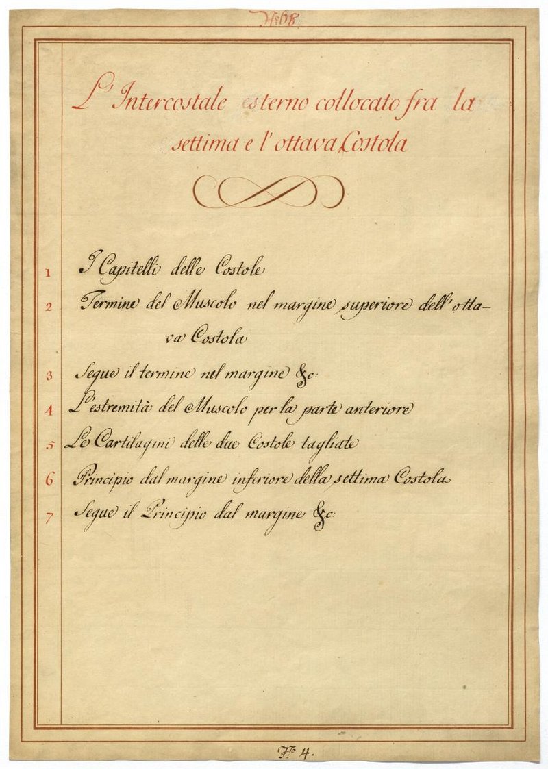 Der Text ist die ergänzende Beschreibung in italienischer Sprache zum anatomischen Wachsmodell der Rippenmuskulatur.