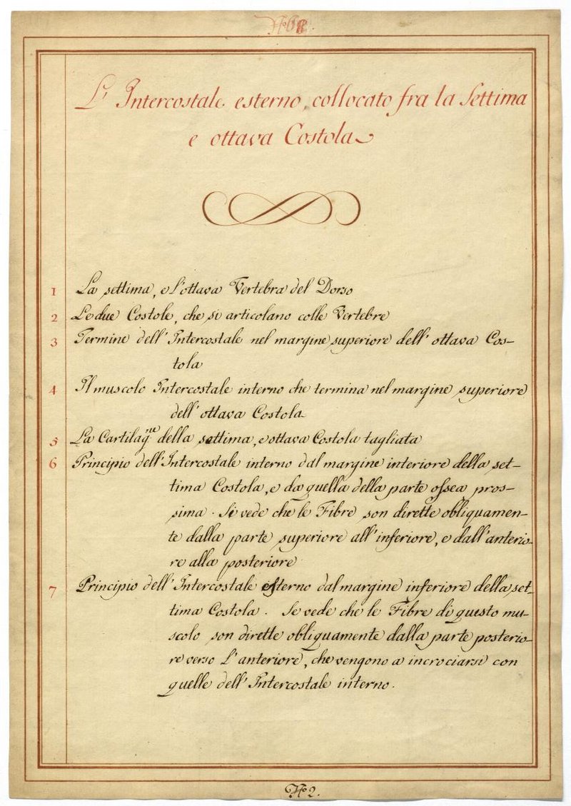 Der Text ist die ergänzende Beschreibung in italienischer Sprache zum anatomischen Wachsmodell der Rippenmuskulatur.