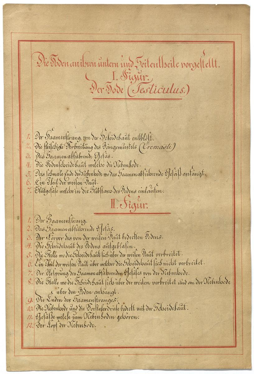 Der Text ist die ergänzende Beschreibung in deutscher Sprache zum anatomischen Wachsmodell der Hoden.