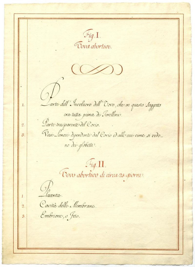 Der Text ist die ergänzende Beschreibung in italienischer Sprache zum anatomischen Wachsmodell der Gebärmutter.