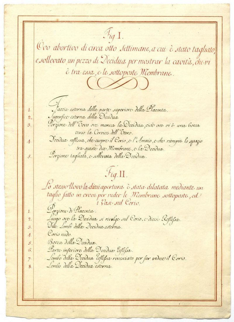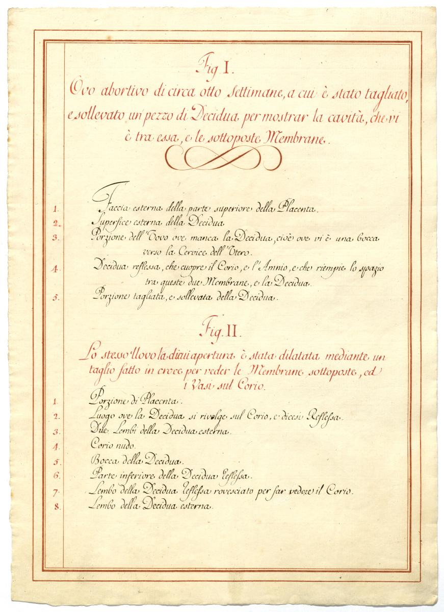 Der Text ist die ergänzende Beschreibung in italienischer Sprache zum anatomischen Wachsmodell der Gebärmutter.