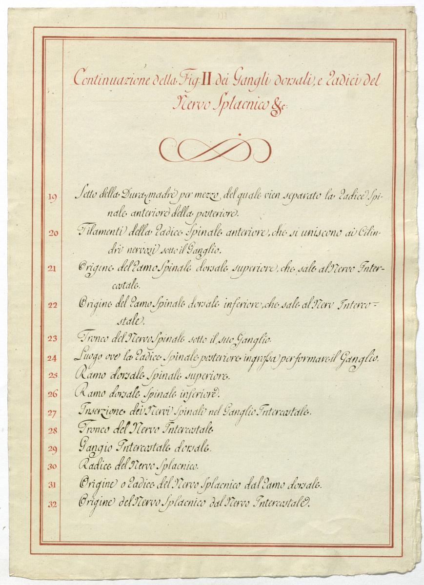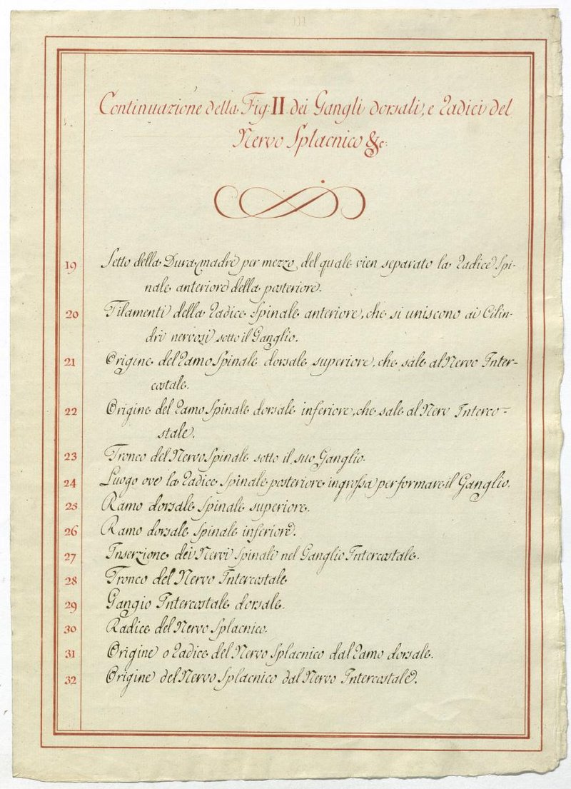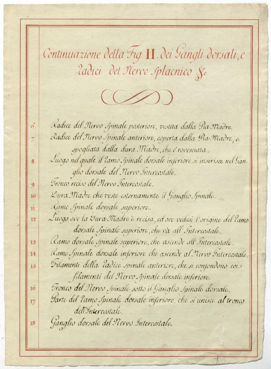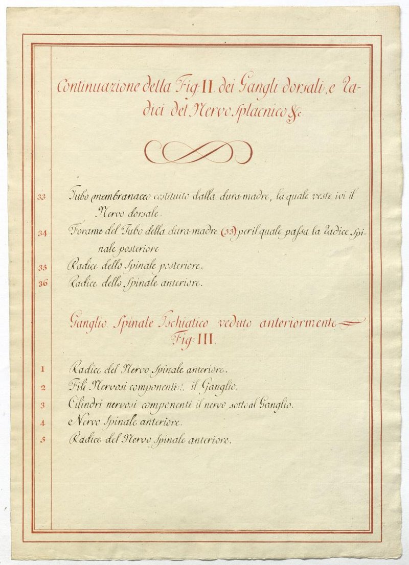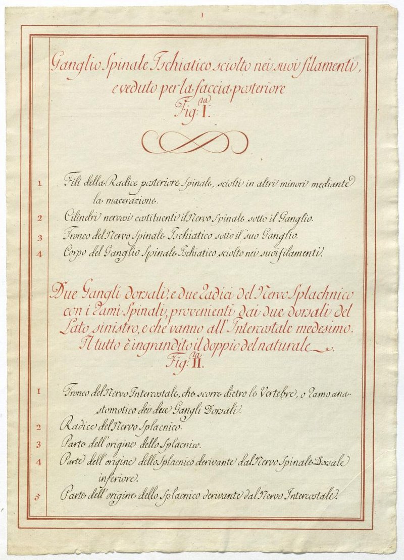 Der Text ist die ergänzende Beschreibung in italienischer Sprache zum anatomischen Wachsmodell der Nervenbildungen.