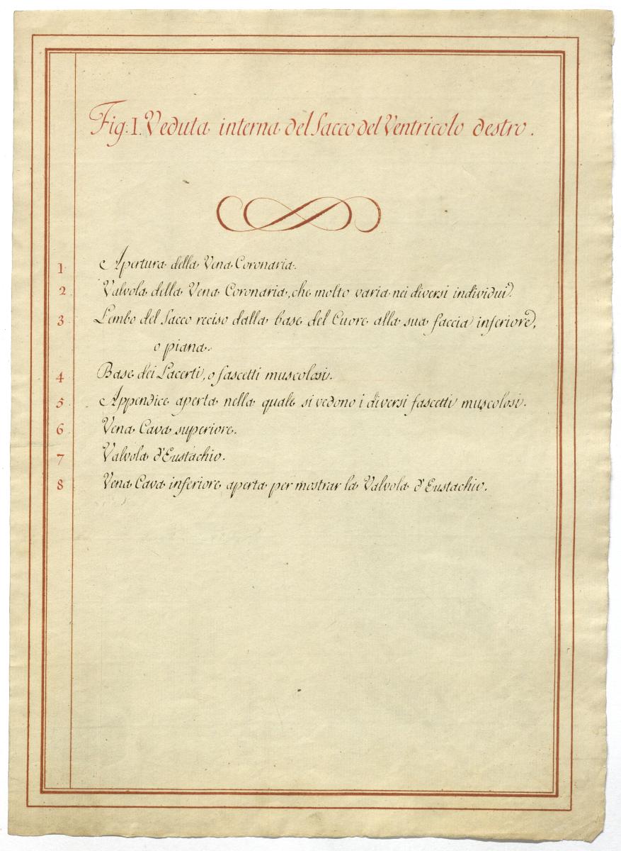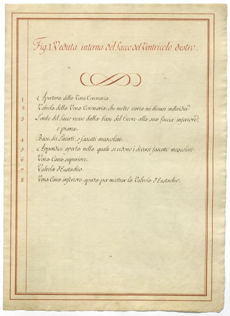 Der Text ist die ergänzende Beschreibung in italienischer Sprache zum anatomischen Wachsmodell des Herzens.