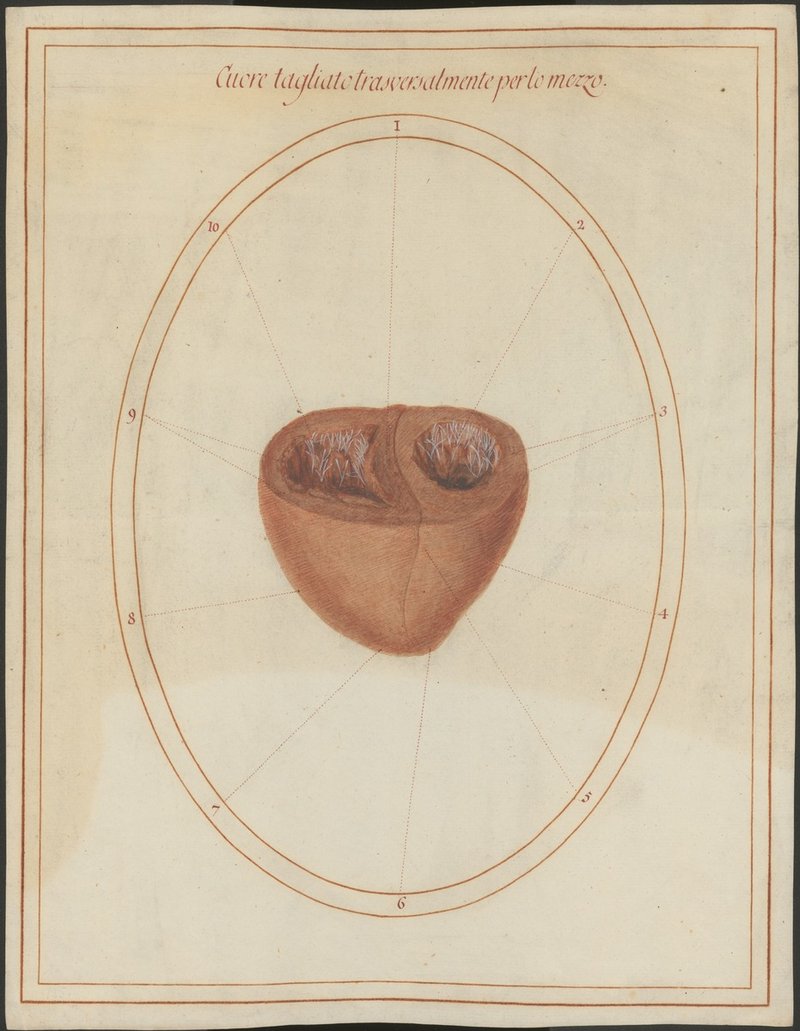 Ein Querschnitt durch beide Herzkammern (Ventriculi cordis).