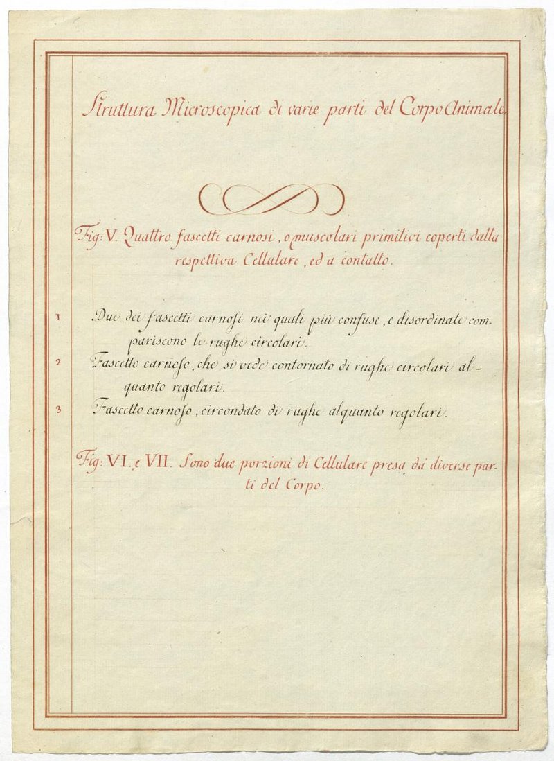 Der Text ist die ergänzende Beschreibung in italienischer Sprache zum anatomischen Wachsmodell der Sehnen und Muskeln.