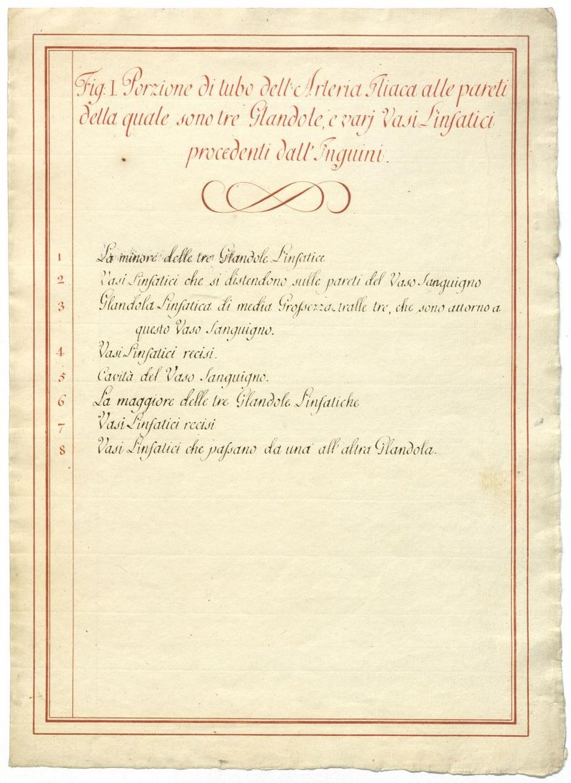Der Text ist die ergänzende Beschreibung in italienischer Sprache zum anatomischen Wachsmodell der Lymphknoten.