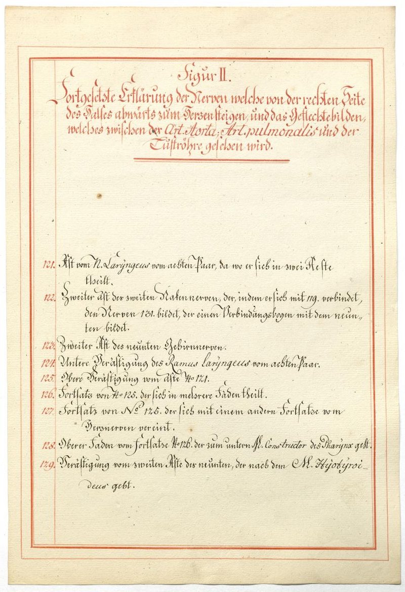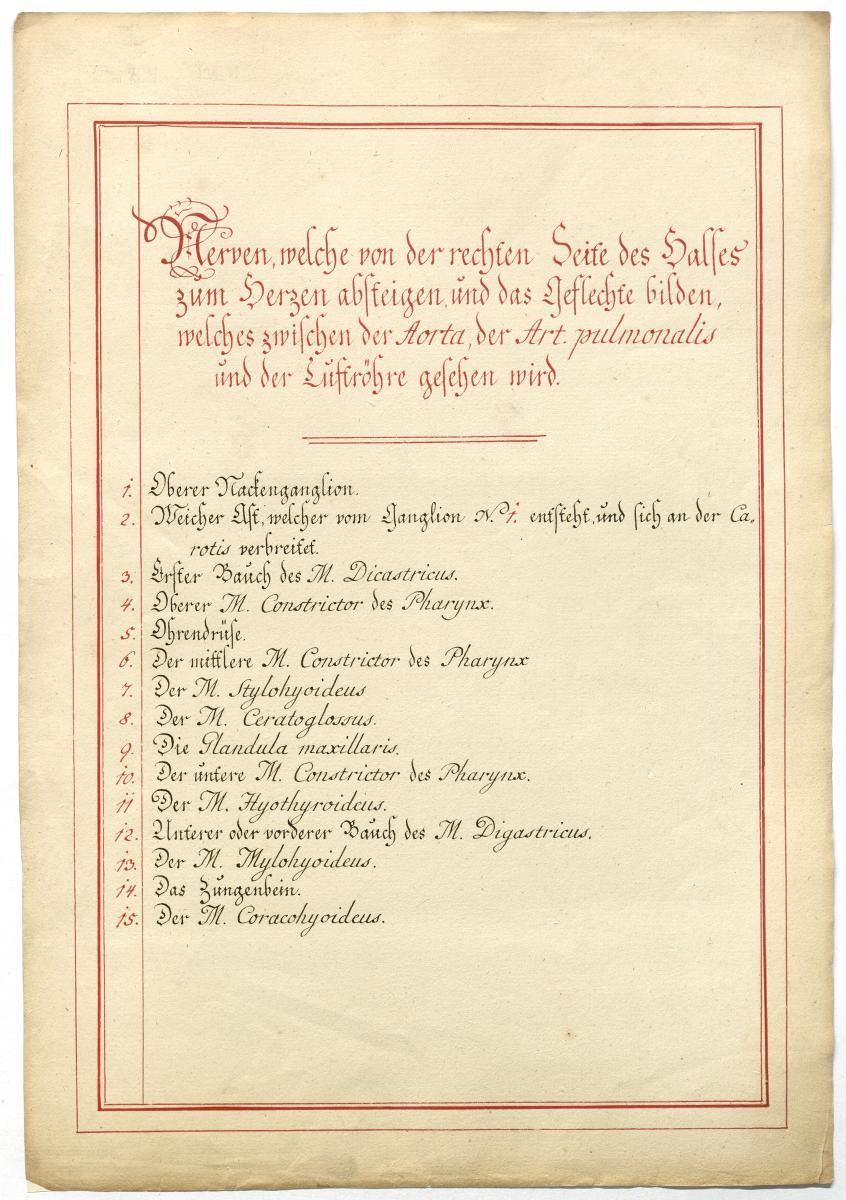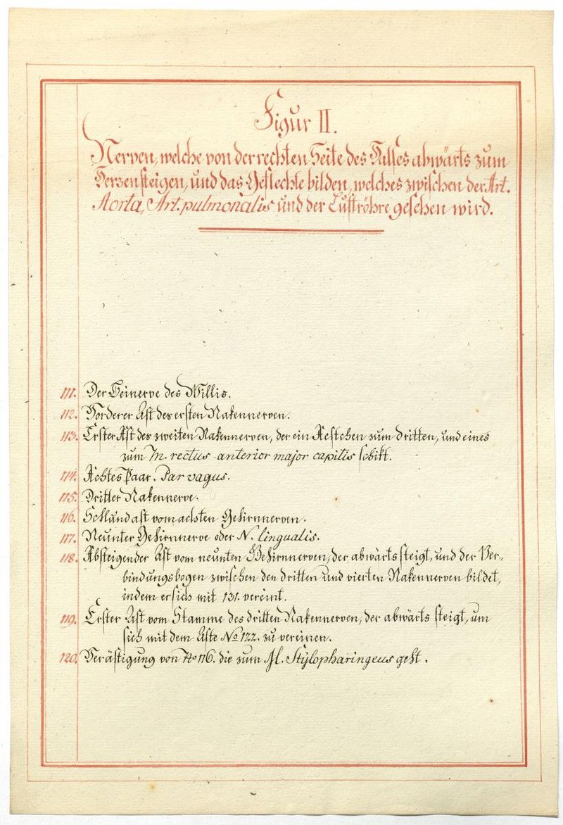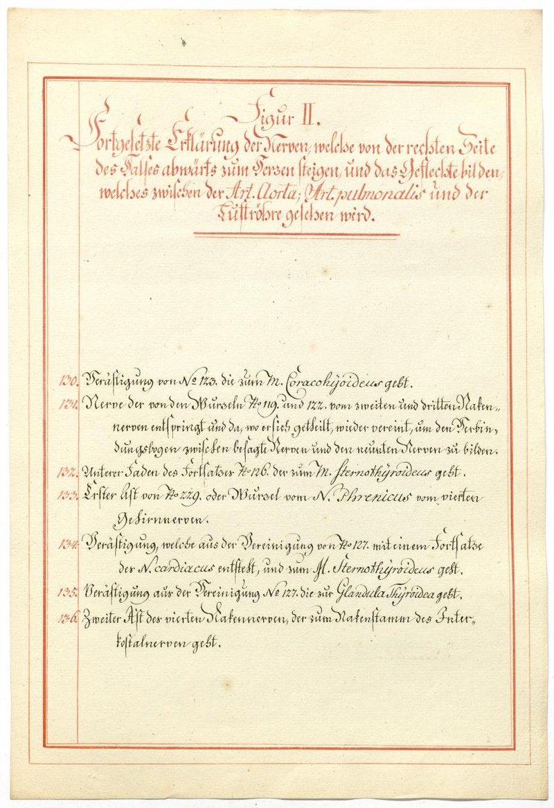Der Text ist die ergänzende Beschreibung in deutscher Sprache zum anatomischen Wachsmodell des Plexus cervicalis, Nervus vagus und Nervus hypoglossus.