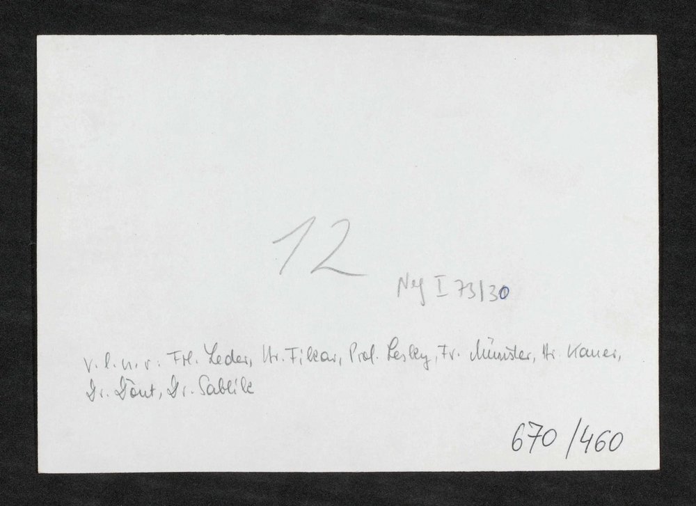 Abgebildet sind außerdem: Fr. Leder, Hr. Fikar, Fr. Münster, Hr. Kauer, Dr. Dout.