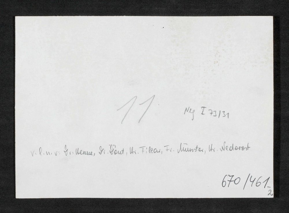 Abgebildet sind: Dr. Henne, Dr. Dout, Hr. Fikar, Fr. Münster, Hr. Nedorost.