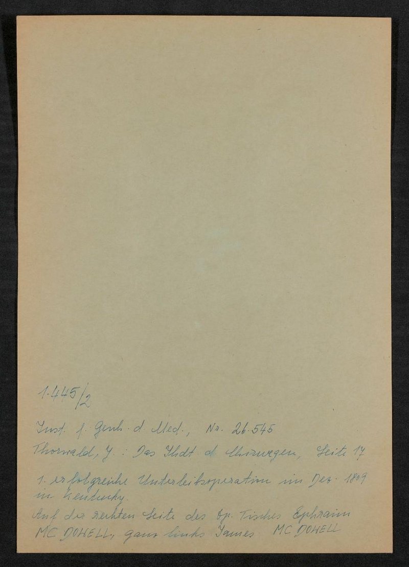 Kopie aus: Jürgen Thorwald, Das Jahrhundert der Chirurgen, Stuttgart 1956, S. 17.