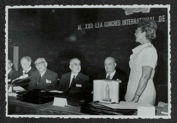 Neben Erna Lesky und Valriu Bologna sind außerdem Prof. Pazzini und Prof. Bariéty zu sehen. Neg. I 211/21-23