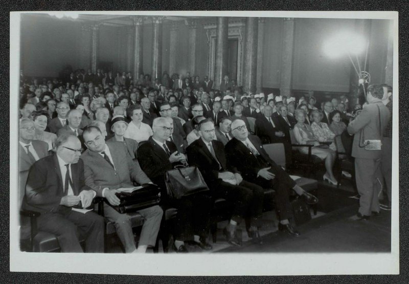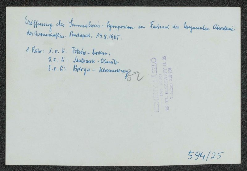 Fotografie: Kemény Lászlo, Budapest. Zu sehen sind: Erna Lesky (3. von rechts), Prof. Petrow (1. von links), Prof. Matousek (3. von links), Prof. Bolga (5. von links).