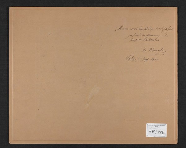 Fotografie: T. Hasegawa, Tokyo. Mit einer persönlichen Widmung von Komoto an Fuchs auf der Rückseite.