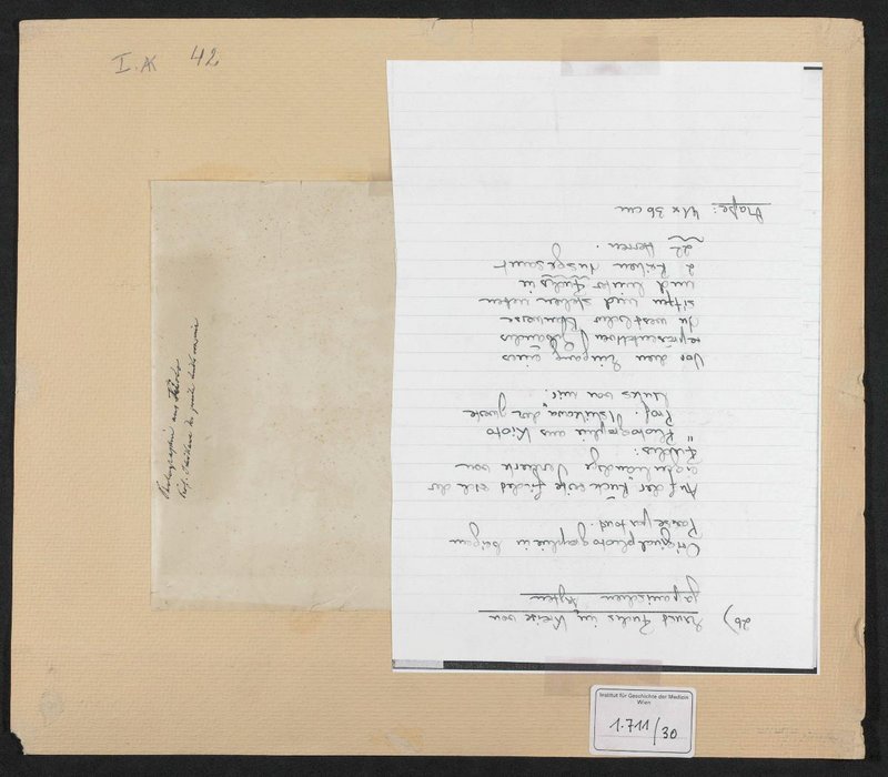 Rückseitig mit einer eigenhändigen Notiz von Ernst Fuchs. Neg. I 17/25, 26