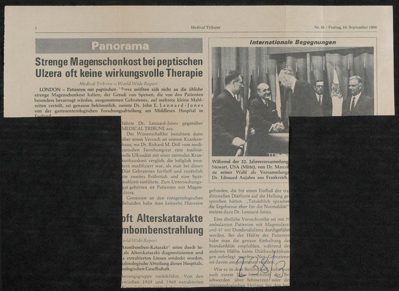 Ausschnitt aus: Medical Tribune. Internationale Wochenzeitung - Ausgabe für Österreich, 1. Jg., Nr. 35, Wien.