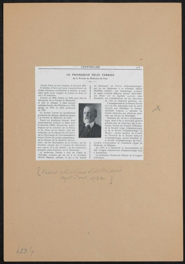 Die Vorlage stammte von Alphonse Chanteau. Das Porträt und die biographischen Informationen sind einer Ausgabe der Zeitschrift Chanteclair. Revue artistique et littéraire, 1932, entnommen.