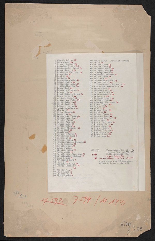 Die Fotografien stammen aus einem Fotoalbum, das zum Zeitpunkt der Entstehung der Montage im Besitz des Rudolfinerhauses war. Die Fotomontage ist um das Jahr 1970 entstanden. Ihr ist eine Liste mit den Namen der Abgebildeten sowie den Fotografen beigelegt.