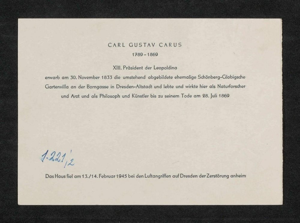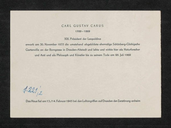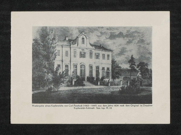 Das Haus wurde während des Zweiten Weltkriegs zerstört. Vorlage war der Kupferstich von Carl Peschek aus dem Jahr 1834. Zum Zeitpunkt des Abdrucks war dieser Teil des Dresdner Kupferstich-Kabinetts.