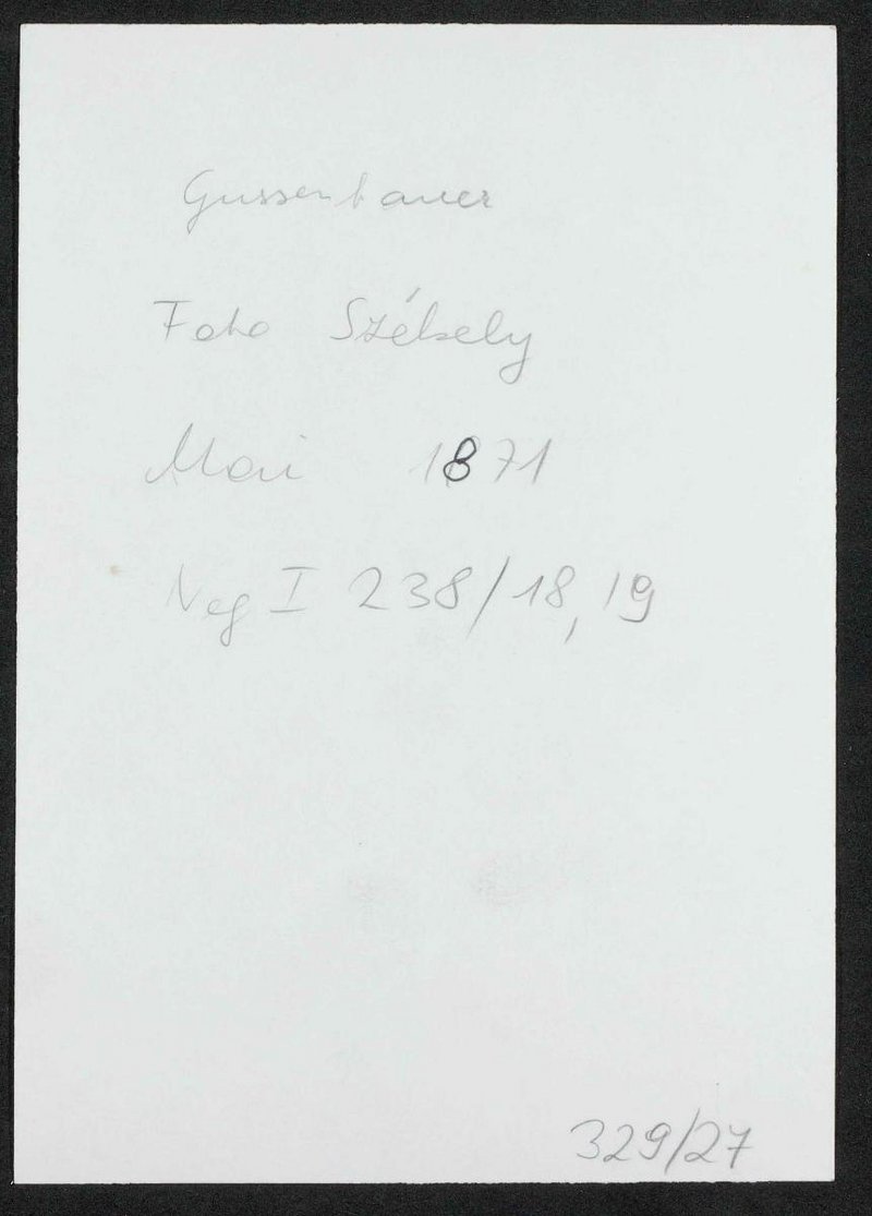 Fotografie: Josef Szekely, Wien, 1871. Reproduktion einer Fotografie, die sich Zeitpunkt ihrer Entstehung im Besitz von Harald Buzzi, dem Neffen von Carl Gussenbauer, befand. Neg. I 238/18, 19