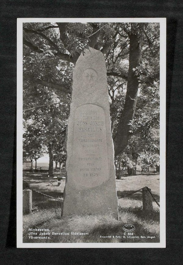 Der Gedenkstein wurde anlässlich des 100. Geburtstages von Jöns Jakob Berzelius im Jahr 1879 errichtet.