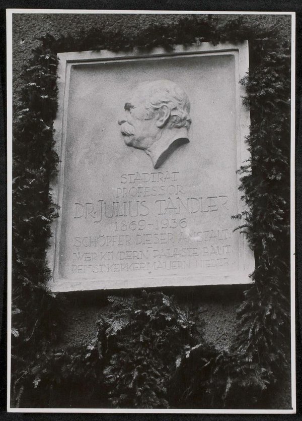 Die Fotografie stammt vom Bilderdienst der Pressestelle der Stadt Wien, Wien. Die Gedenktafel wurde 1946 von Josef Franz Riedl, Bildhauer, angefertigt. Neg III 217/4
