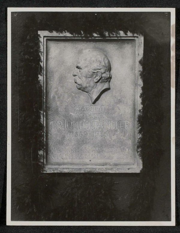 Die Fotografie stammt vom Bilderdienst der Pressestelle der Stadt Wien, Wien. Die Gedenktafel wurde 1946 von Josef Franz Riedl, Bildhauer, angefertigt. Neg III 217/4