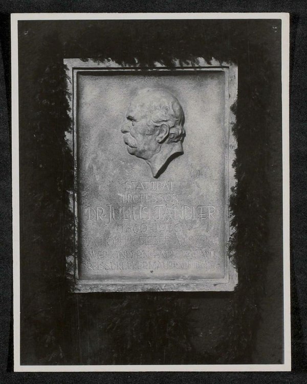 Die Fotografie stammt vom Bilderdienst der Pressestelle der Stadt Wien, Wien. Die Gedenktafel wurde 1946 von Josef Franz Riedl, Bildhauer, angefertigt. Neg III 217/4