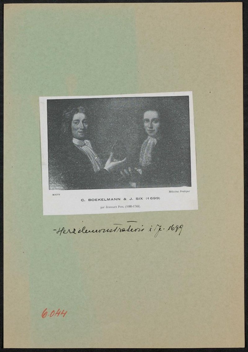 Das als Vorlage dienende Gemälde ist Juriaen Pool 1699 angefertigt worden. Der Originaltitel lautete Zwei Offiziere der Chirurgengilde. Das vorliegende Bild ist einer unbekannten Ausgabe der französischsprachigen Fachzeitschrift Medicine Pratique entnommen worden.