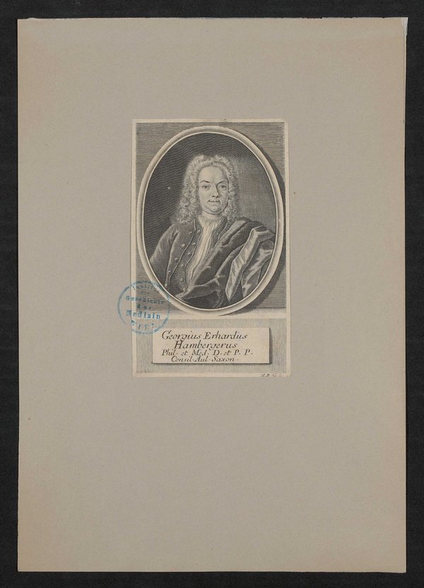 Der Kupferstich ist von Martin Bernigeroth angefertigt worden. Vorderseitig mit einem Stempel des Instituts für Geschichte der Medizin, Wien, versehen.