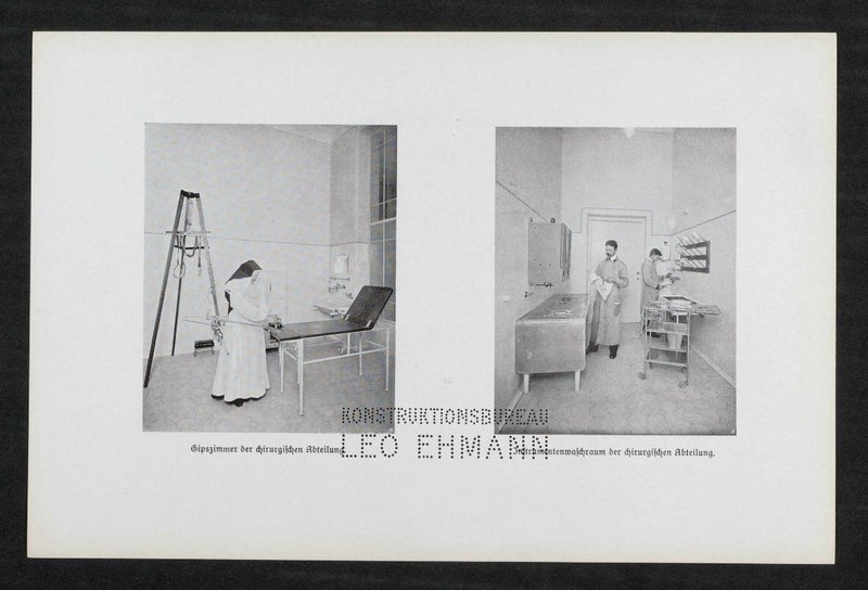 Die Fotografien wurden von Martin Peter Gerlach senior angefertigt. Das Konstruktionsbüro Leo Ehmann hat die gesamte medizinische Einrichtung des Spitals geplant und hergestellt.