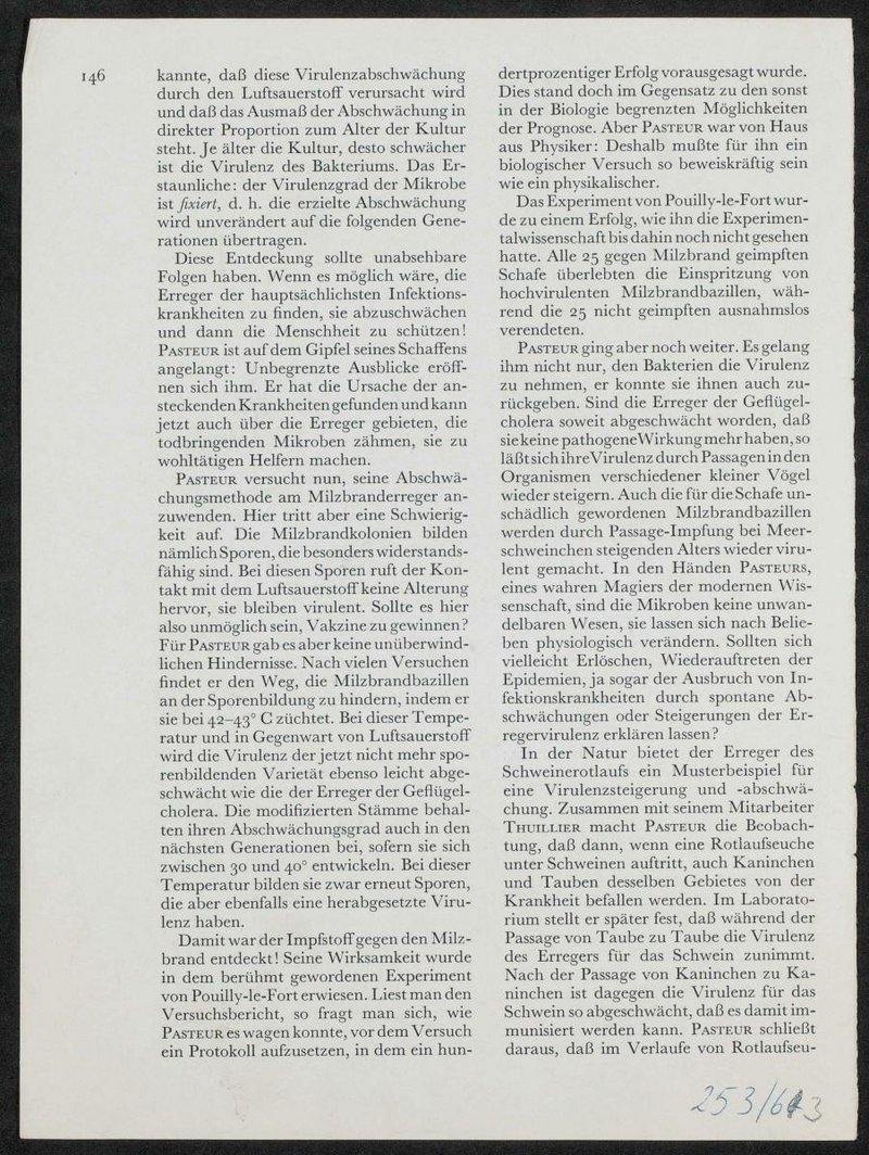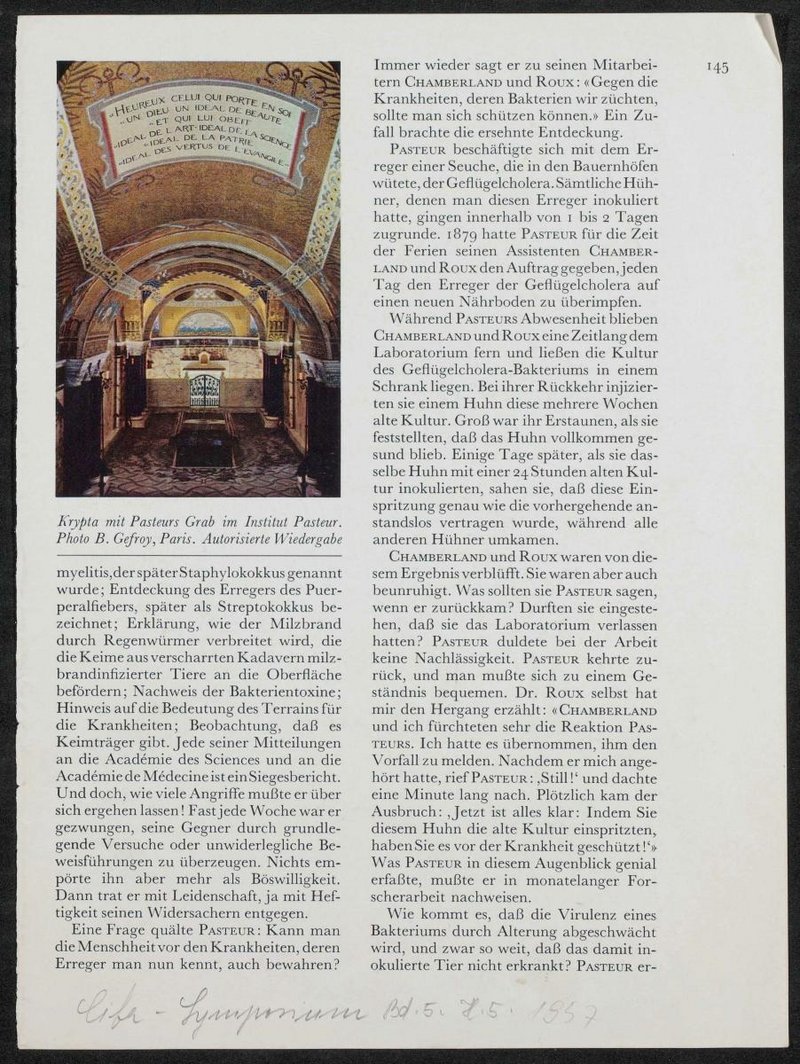 Abbildung und Erläuterungen zu den Entdeckungen Pasteurs sind dem Ciba-Symposium, Bd. 5, Heft 5, 1957, S. 145 f., entnommen.
