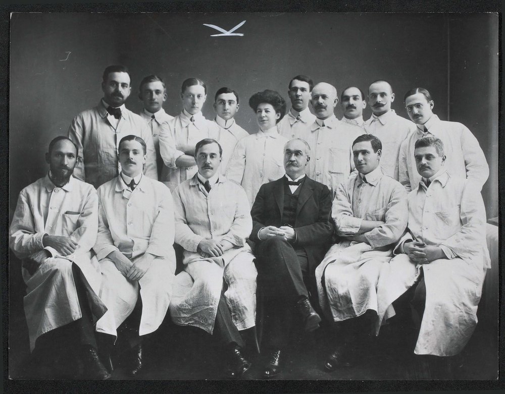 Auf der Fotografie sind zu sehen: Friedrich Schauta (Mitte 1. rechts), Ludwig Adler (2. von rechts), Hans Thaler (1. von rechts), Bianca Bienenfeld (Mitte).