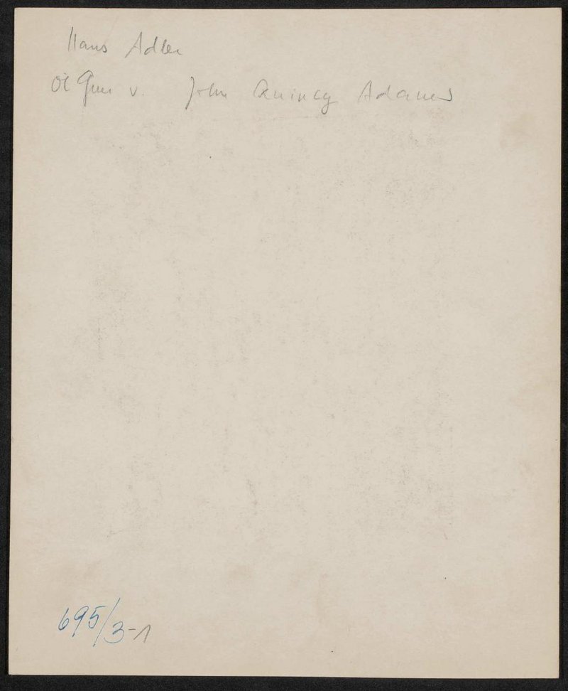 Dem Bild lag ein Gemälde von John Quincy Adams, 1907, als Vorlage zugrunde, das sich im Besitz von Johanna Wintersteiner-Adler befand. Neg I 16/39, 40