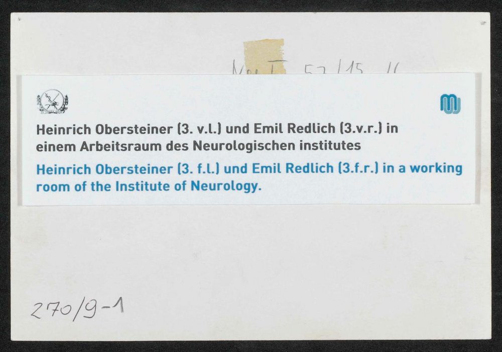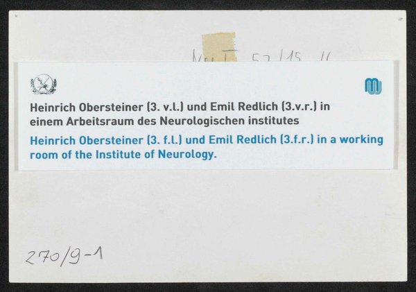 Die Vorlage befindet sich im Besitz des Neurologischen Instituts der Medizinischen Fakultät der Universität Wien. Neg. I 57/15,16 Neg. I 229/1,2 Neg. III 58/7