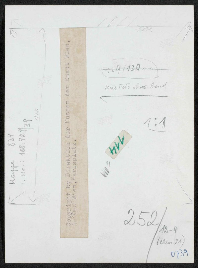 Die Fotografie wurde von den Museen der Stadt Wien, Wien, angefertigt und wahrscheinlich für eine Buchpublikation benutzt. Die fotografische Vorlage stammte von Philipp Georg von der Lippe.
