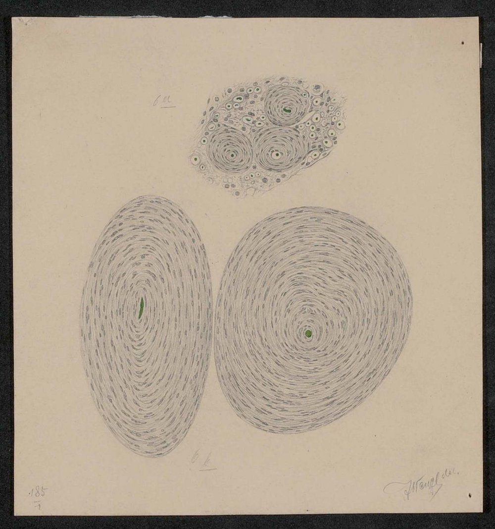 Die Zeichnung könnte für den Abdruck in einem medizinischen Lehrbuch oder für die Veranschaulichung in Lehre und Praxis verwendet worden sein. Die unten rechts angebrachte Unterschrift der Zeichner:in könnte für T. Wenzel stehen.